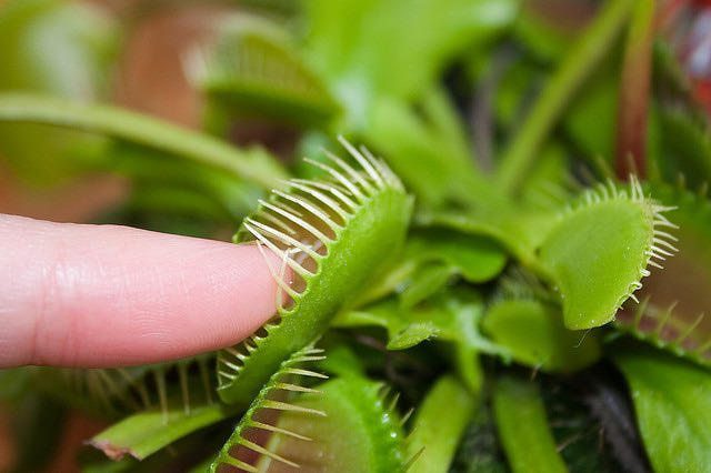 Does a Venus flytrap bite a human finger?
